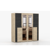 Armoire Albanor avec miroir 200 cm Les couleurs à la mode des meubles font que l'armoire Albanor répond à toutes les attentes, tandis que les miroirs décorant les façades et les poignées intéressantes souligneront le style de n'importe quel intérieur. L'agencement peut être complété par d'autres meubles de la série Albanor. Les portes à ouverture traditionnelle facilitent l'utilisation quotidienne. L'intérieur de l'armoire est divisé en quatre parties équipées d'étagères et de deux tiges parallèles .