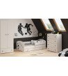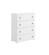 La commode Emmely est fabriquée en panneau de mobilier stratifié de haute qualité de 18 mm d'épaisseur, garantissant durabilité et résistance à l'usage quotidien. Elle est équipée de quatre tiroirs spacieux pouvant accueillir vêtements, jouets ou autres accessoires pour enfants. Les coulisses à billes avec blocage d'arrêt assurent une ouverture fluide et sécurisée des tiroirs, ce qui est particulièrement important pour les plus jeunes utilisateurs. La commode Emmely n'aide pas seulement à organiser l'espace, elle apporte aussi du charme à la pièce grâce à sa finition esthétique et à ses poignées en bois peintes avec une laque à l'eau.