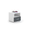 La table de chevet Emma a été conçue pour allier confort et fonctionnalité. Équipée d'un tiroir pratique, elle permet de ranger de petits objets tels que livres, jouets ou accessoires, contribuant ainsi à garder la chambre bien ordonnée. Sa construction solide en panneau de mobilier stratifié assure durabilité et résistance à un usage quotidien. En plus, vous pouvez choisir une poignée colorée, ce qui permet d'adapter le meuble au style de la chambre et d'apporter une touche de personnalisation que les enfants adorent.